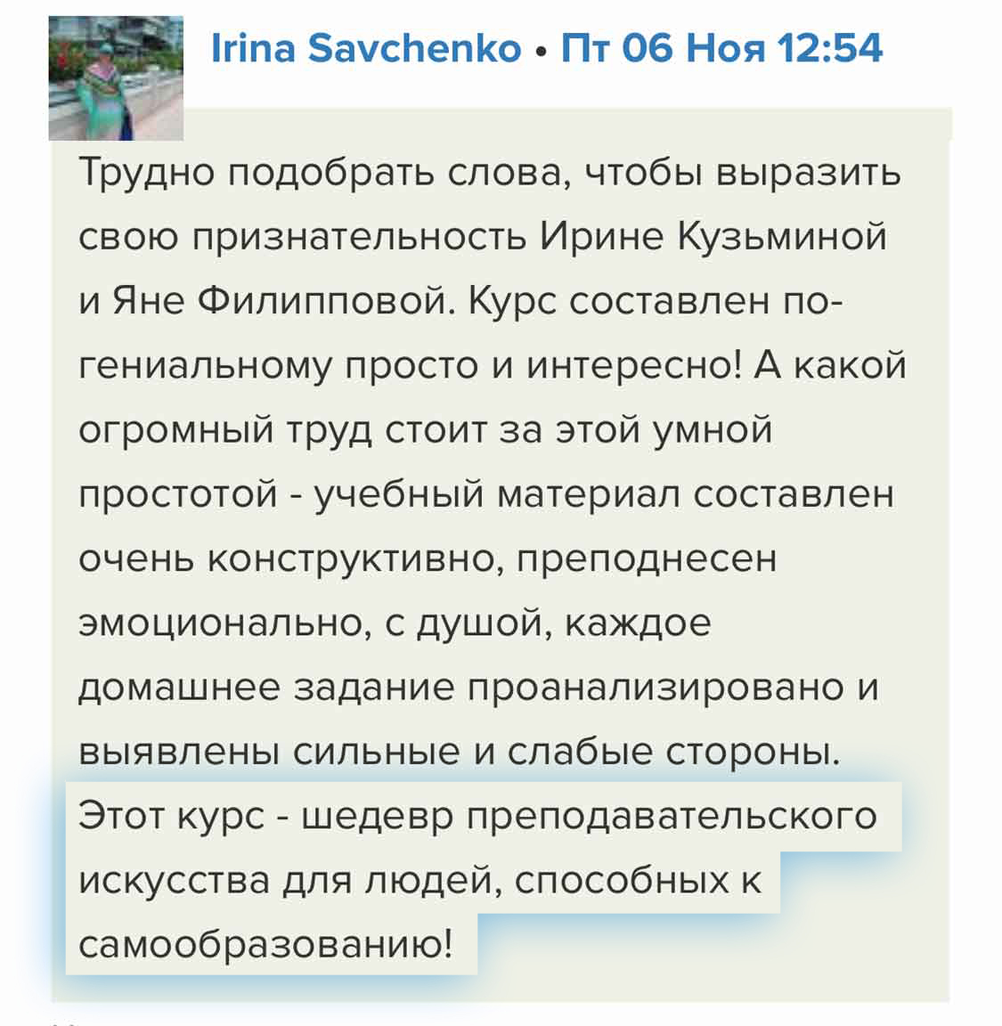 Персональный куратор на протяжении всего интенсива